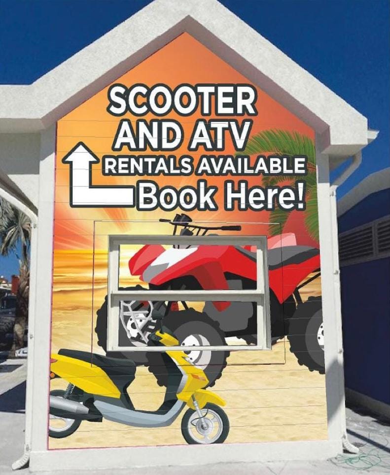 Also, at the cruise port, you will proceed to the pink building in the center of the port that will advertise “Scooters, Atv’s & Buggy’s”. Once you’ve arrived at the booth you will proceed to the window that has “Virgo Car & Scooter Rental” listed.